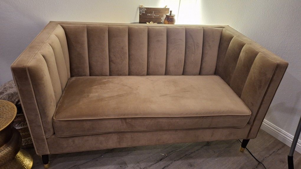 Leanna Channel Tufted Velvet Loveseat from World Market Stain-free, from non-smoking home. See photos for dimensions Legs are removable for transit