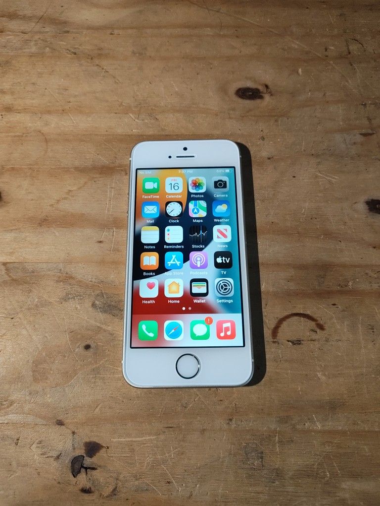 Unlocked Apple iPhone SE (1st generation, Gold) 16 GB storage, carrier unlocked with iOS 15.7 installed. Great condition overall front and back. Overall there are minimal scuffs or scrapes as shown in the pictures. Brand new battery installed with battery capacity showing 100% health. Fresh install and ready to use, no iCloud accounts attached. Sale includes: iPhone SE 1st Generation Gold Lightning charging cable