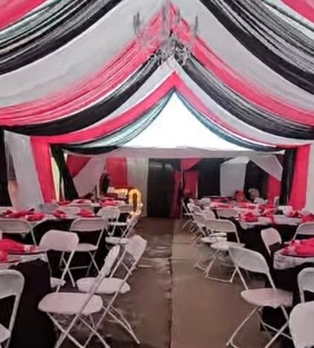 Drapes, Chair, Tables, Back sets, Tents, Table Cloths, Plates Chandelier All Your Party Needs