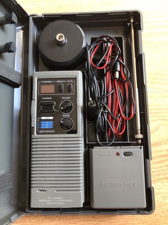 Vintage Realistic 40 Channel 2-Way CB Radio TRC-475 With Original Case. Uses 8-AA batteries, weather radio, emergency radio. Magnetic antenna