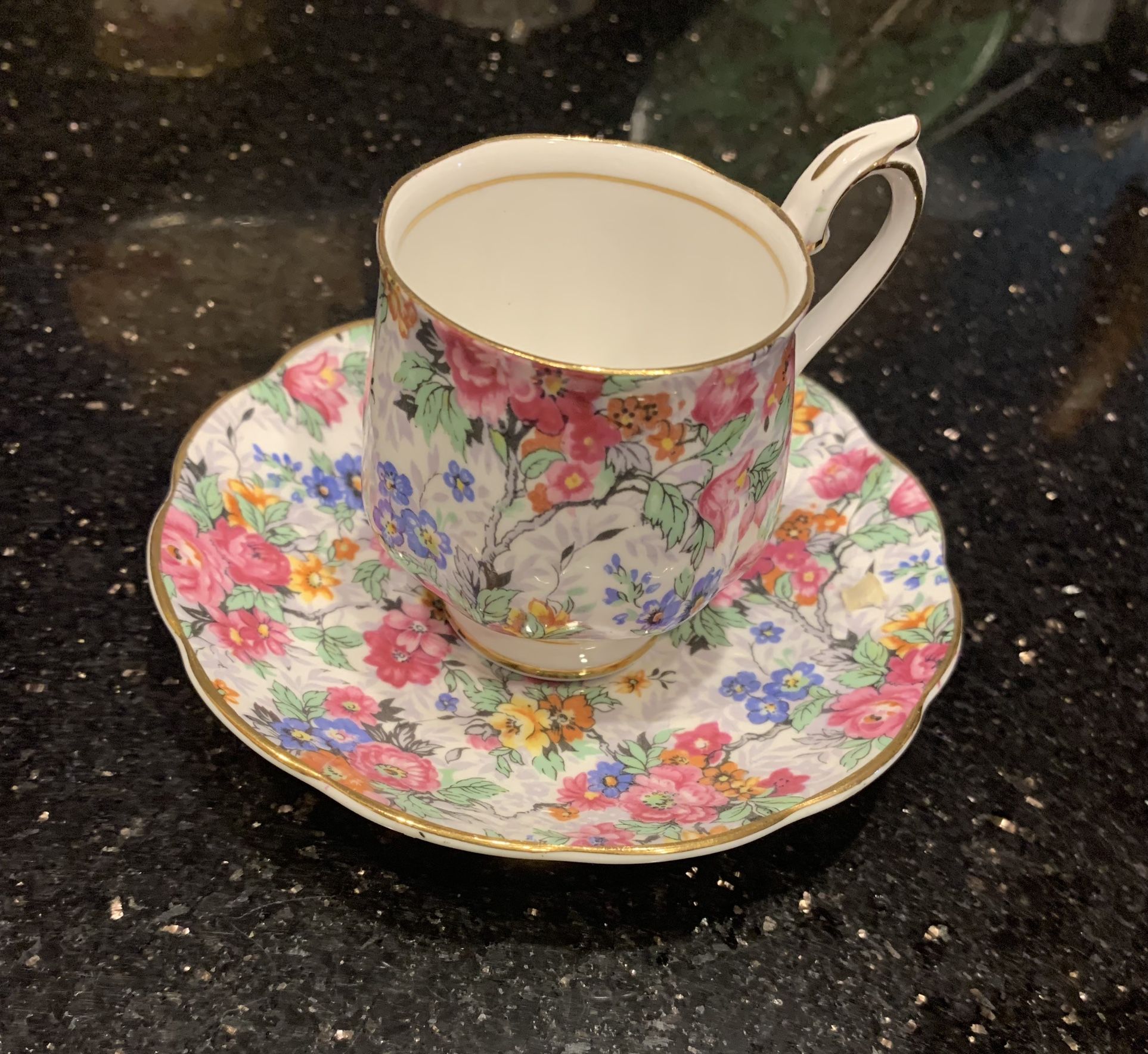 Royal Albert expresso demitasse cup and saucer. Highly collectible chinz pattern. Fine bone china. Never used. Used for display only. A beautiful addition to your collection or table.
