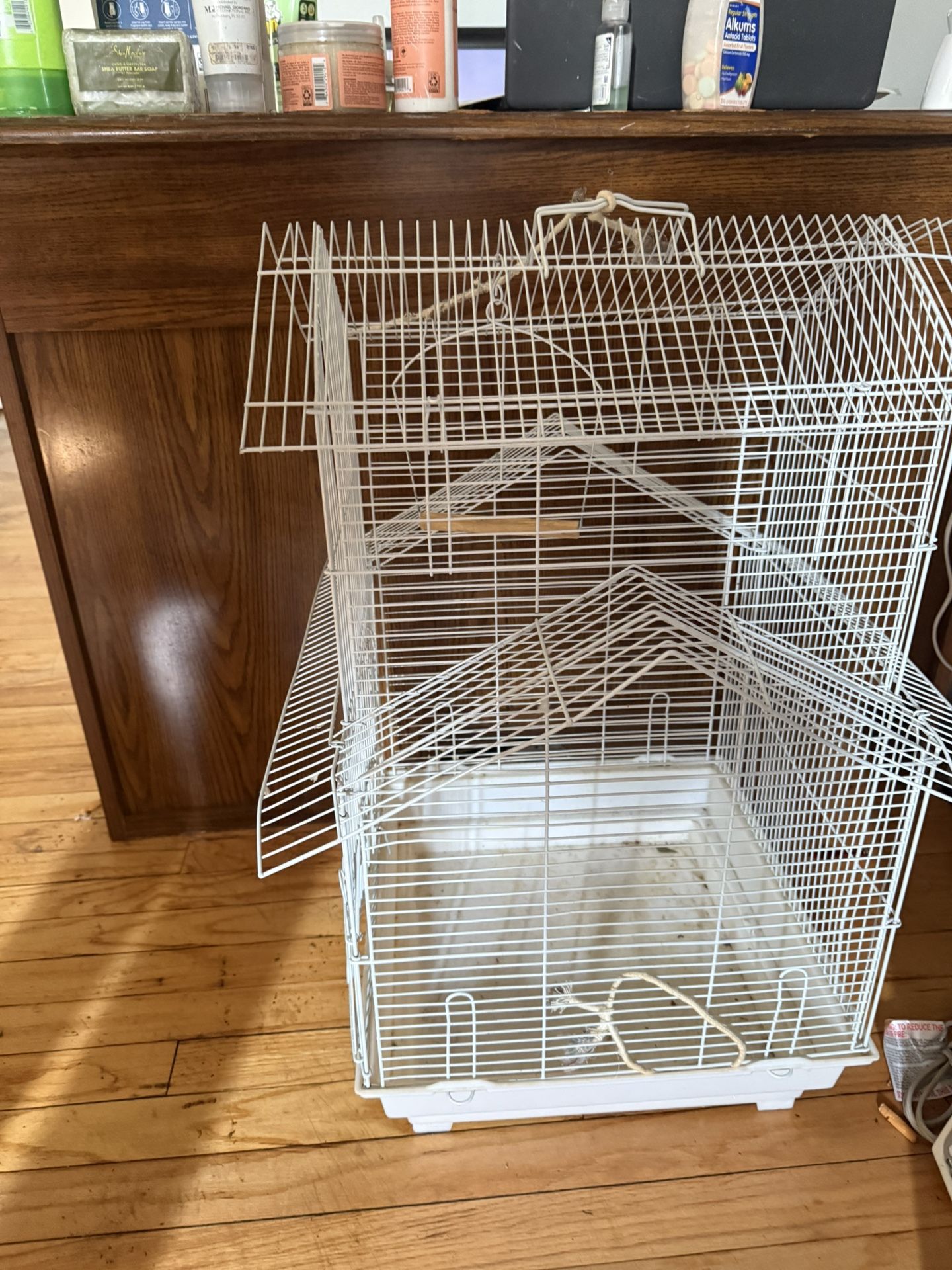 It has a swing for the birds. One cage fits all. This is an old picture. It’s being cleaned out