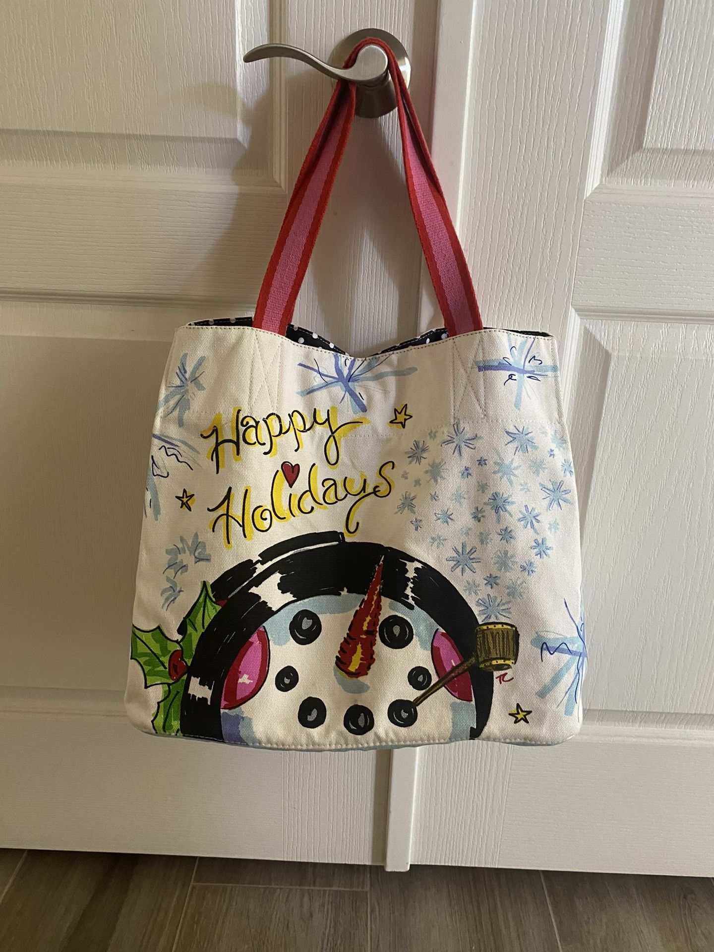 Brighton Canvas Large Holiday Tote. Small zippered pocket inside. 16”Wx14”Hx8”D Val Vista & Ray