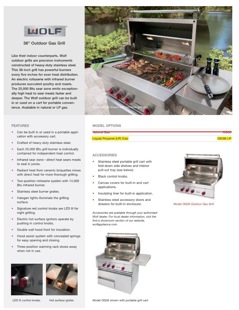 Wolf 36” Outdoor gas grill (excellent Condition)