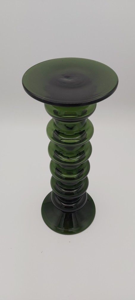 Large Vintage Green Glass Pillar Candle Holder