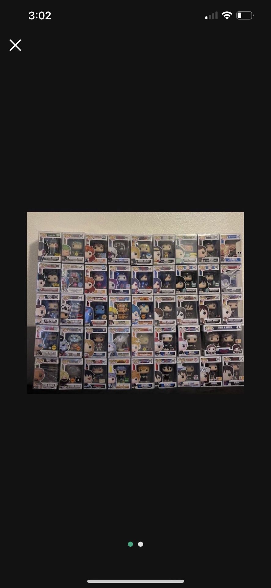 Let me know which ones you are interested in. Different prices or best offers Will trade for other funkos (mainly looking for Five Nights at Freddy) and one piece cards (local only) Ssj2 Gohan sold Shinra GITD sold CM Punk sold Asuka sold Chase Law sold Asuna sold Pick up only Can ship Funko Pop Grails, Anime, One piece, Sword Art Online, Naruto, Dragon Ball, Bleach, Tokyo Ghoul, Demon Slayer, Attack on Titan, My Hero Academia, Hunter x Hunter, Cow Boy bepop, Death Note, Fire Force, Evengelion, Seraph of the End, The Last of Us, Stranger Things, Breaking Bad, WWE, GI Joe, brook shared, Funko chase.