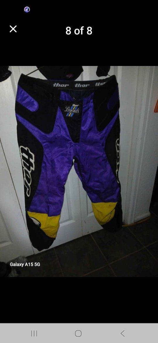 Thor black, purple some yellow Great condition. 34 size $45 More pics coming soon. Also have Alpinestars womans chest protector $100 and a Modular pink helmet $100 for sale. All in real good condition. Text best (contact info removed) Pueblo west. We can meet or you can come to me.
