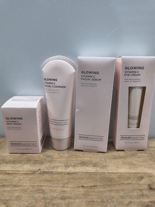 NEW Global Beauty Care Glowing Vitamin C 3 Piece Set with Vitamin C Eye Cream, Vitamin C Skin Cream and Vitamin C Eye Cream with Niacinamide