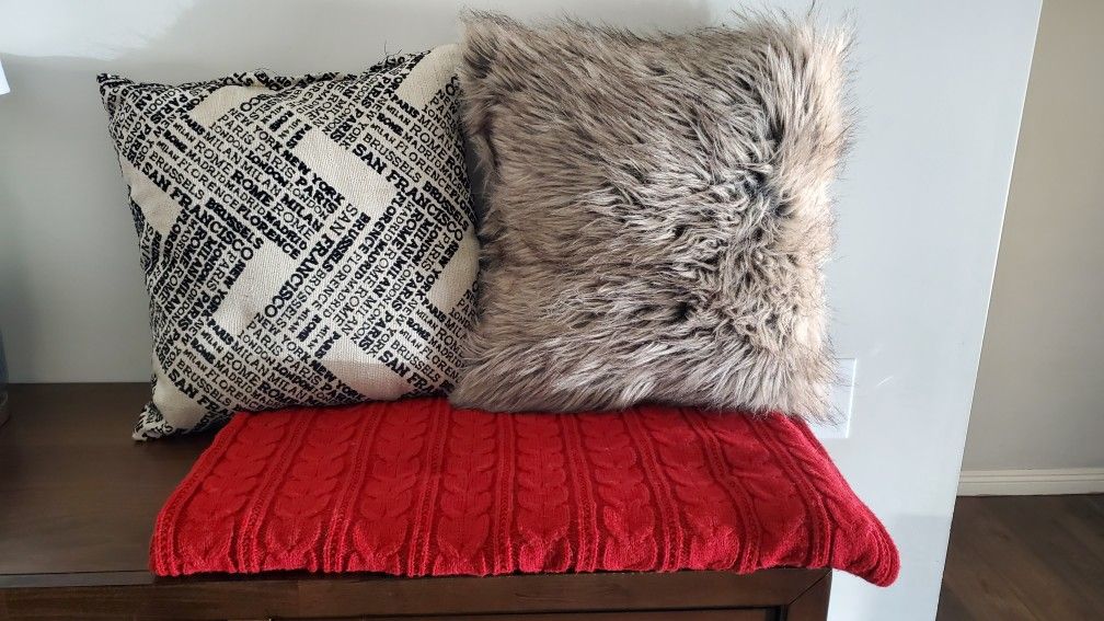 Selling this combo of blanket and 2 pillows. The blanket is from allen + roth Red/Normal 50-in x 60-in Throw blanket from lowes. Both pillows measure around 15" x 15" inches +/- an inch. They are all used but in good condition.