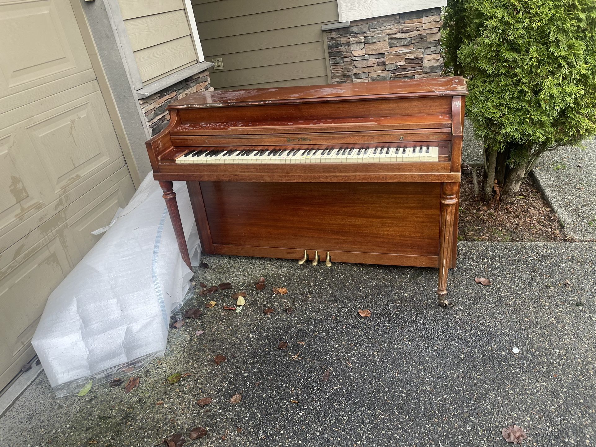 My dad is trying to get rid of our piano. It’s fully functional but old and as you can see some of the black keys needs to be reapplied with glue. The white cast on top is water and can be wiped off. Piano is located on Bothell. Would be best if it can be picked up but can be delivered if you are willing to load and unload.
