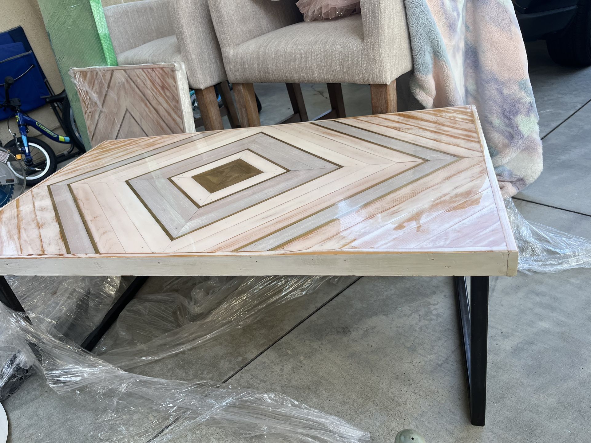 Custom made wood and metal coffee table, end table, and entrance table set. We have moved and are down sized. Amazing woodwork, unique one of a kind. The legs are detached on two of the tables for easy transfer, easy to put back on. Asking $300 for the set. Sold as set.