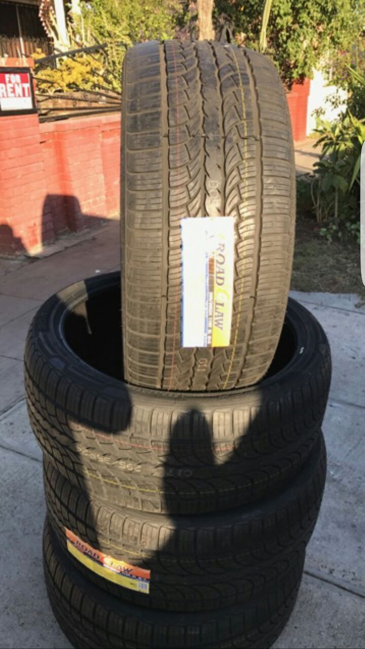 THESE ARE A BRAND NEW SET OF 4 TIRES WITH LABELS BRAND: ROADCLAW MODEL: RH680 SIZE: 295/35/24 WE DEILVERY STRAIGHT TO YOUR DOOR FOR FREE!!!!!!!!! !!!!!!!WE CARRY ALL SIZES AND BRANDS SO PLEASE ASK FOR THE SIZE YOU NEED!!!!!!!!!!!!! THIS IS FOR TIRES """"""""ONLY"""""""""" NO MOUNTING AND BALANCING DEILVERY ONLY.. I AM A WHOLSALE TIRE DISTRIBUTER NOT A RETAIL SHOP I WHOLESALE TO THE PUBLIC AT A LOW COST!!!!!!!!!!!!!! YES ALL TIRES HAVE A FACTORY WARRINTY ON DEFECTS SUCH AS CRACKING OR SEPERATION!!!!!!! PRICE IS FIRM WILL NOT GO DOWN SO PLEASE DON'T ASK!!!!!!! LUCKY'S MOTORSPORTS FOLLOW ON INSTAGRAM @LUCKYS_MOTORSPORTS
