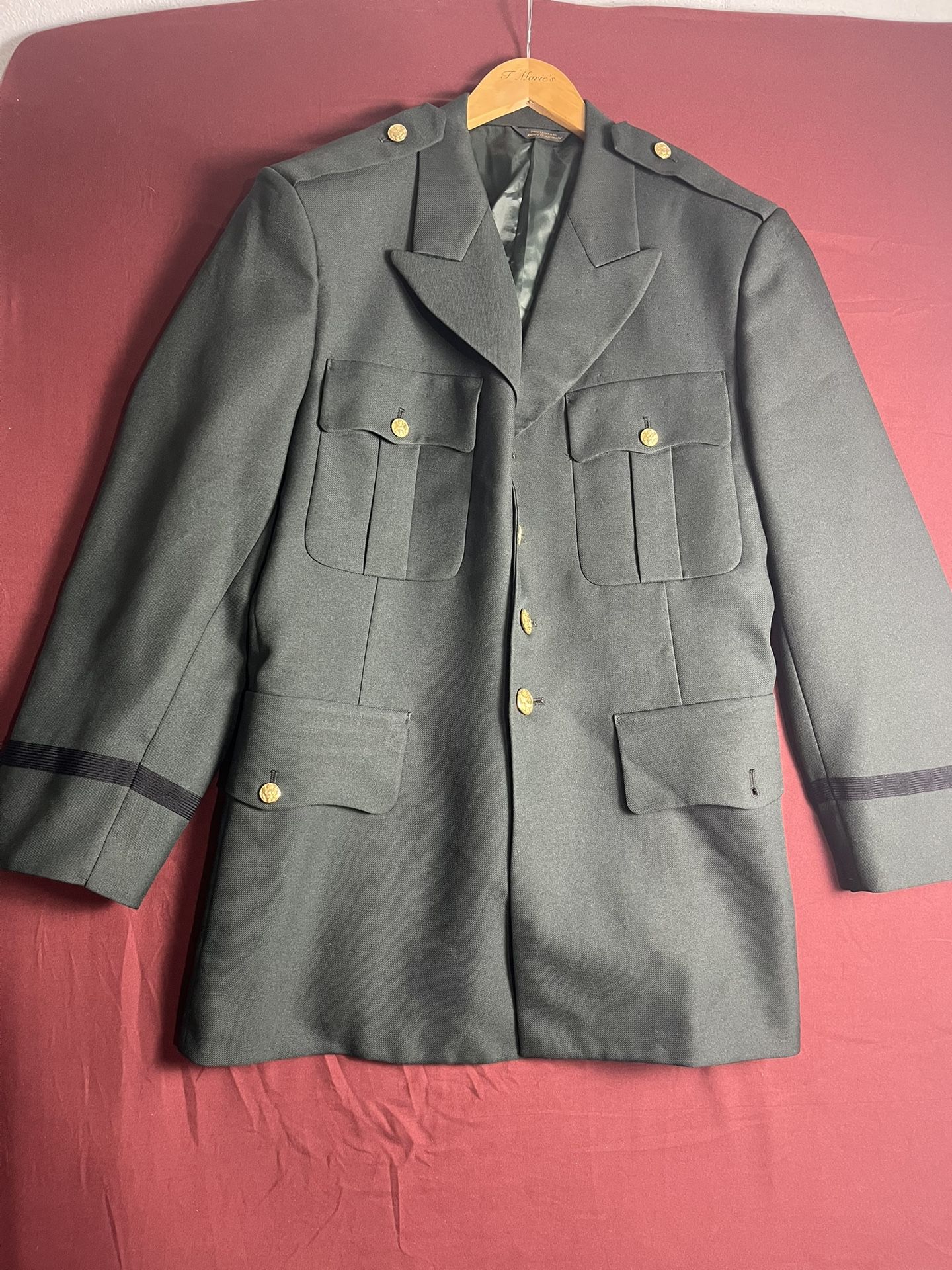 The product is an olive green Military blazer for men by Davis Clothing Co. It is classified as a blazer in the men's department, with a color of green.