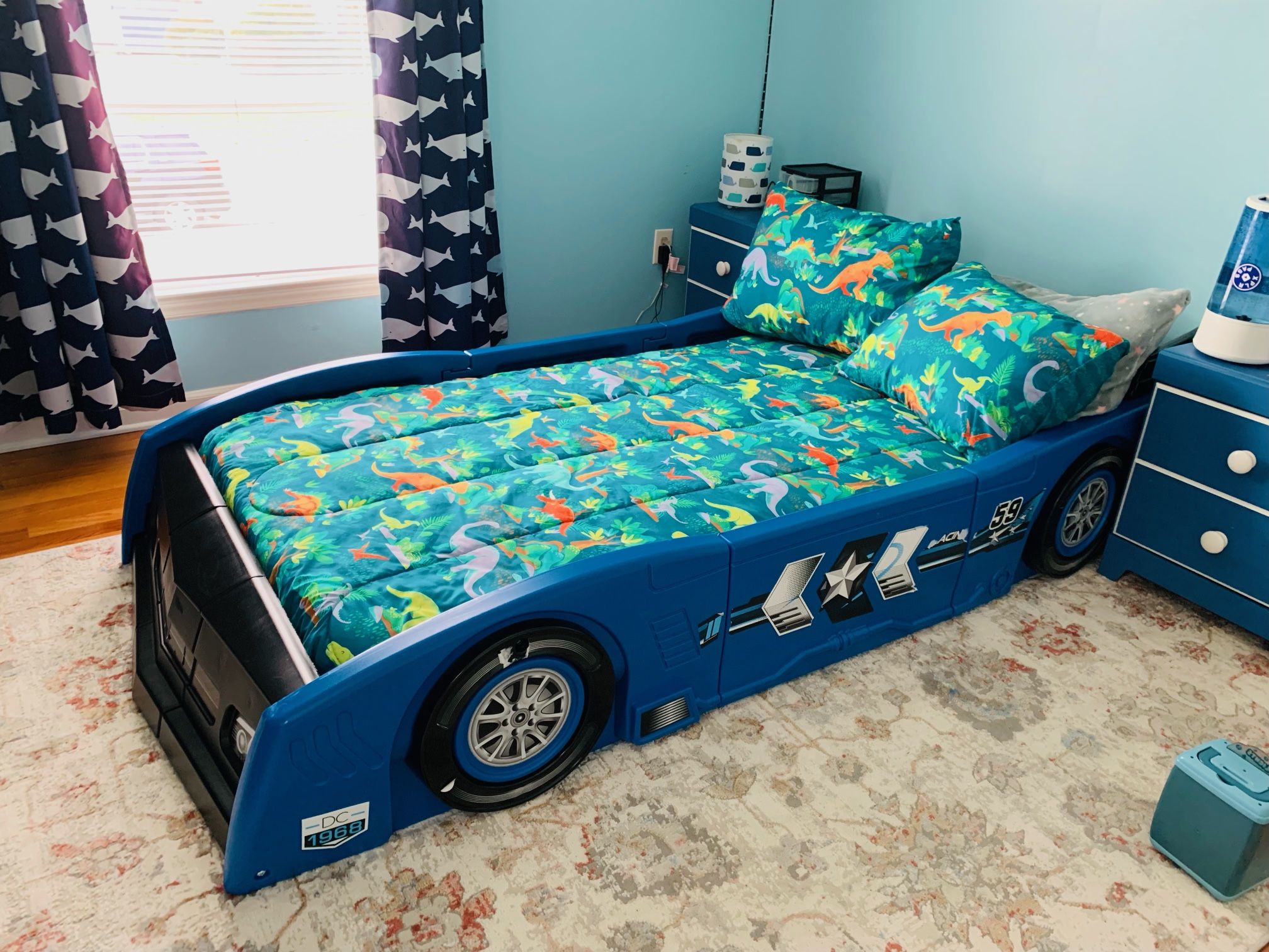 This bed is 6 months old come with mattresses with  potation, pad and 2 extra sheets set ( spider-Man dinosaur )