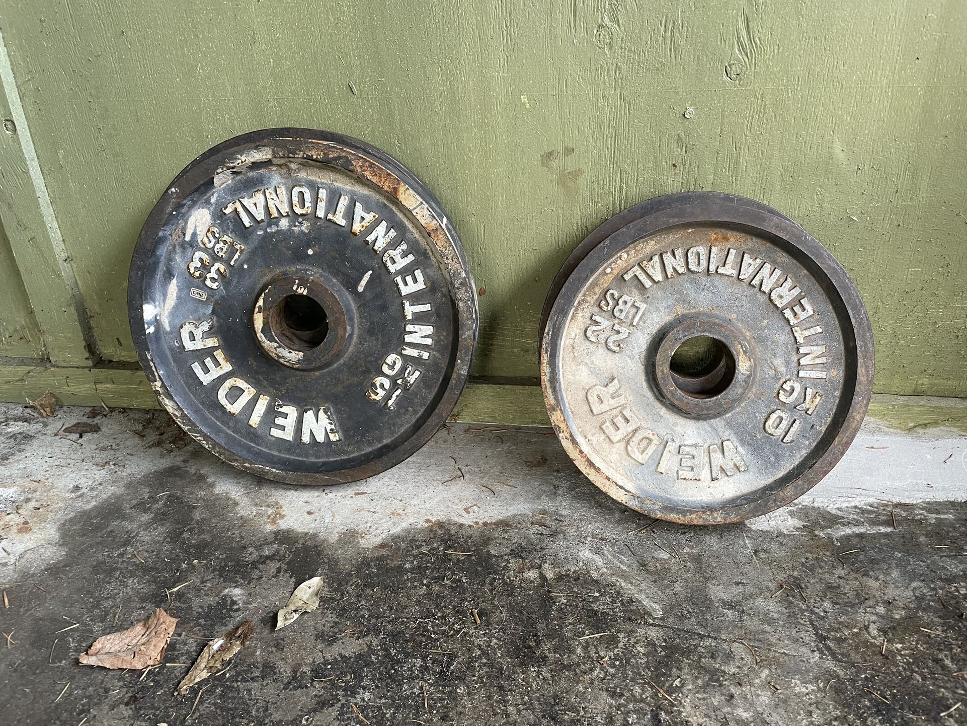 2 x 22lbs olympic weights (10kg) 2 x 33lbs olympic weights (15kg) 4 x 7.5lbs standard weights 4 x 10lbs standard weights 50 cents per lbs. Barbell dumbbell squat rack strength training kettlebell