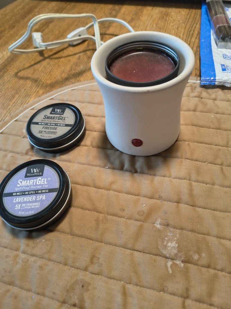 Woodwick smart gel with warmer you get too gels. Has on and off switch.