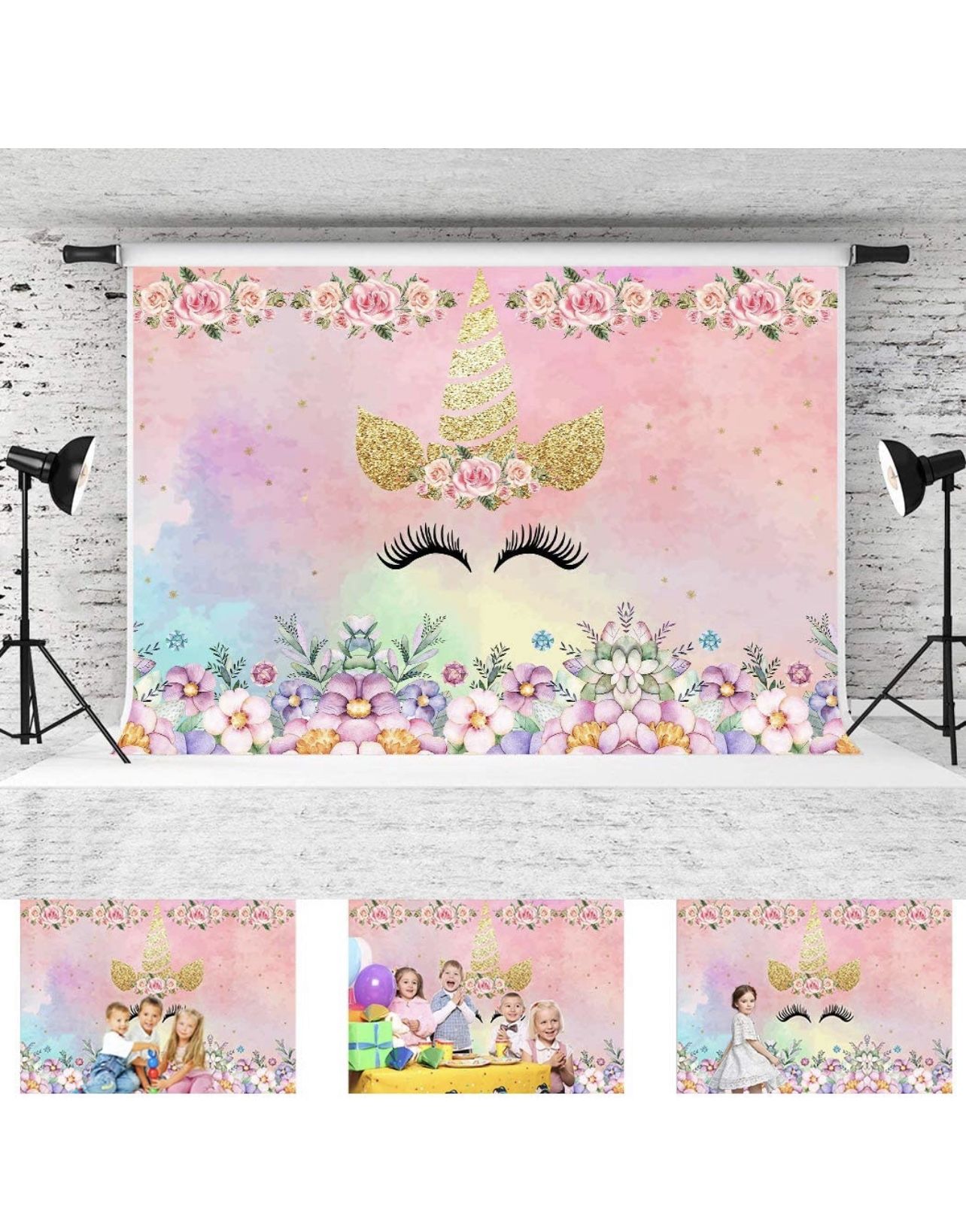 Unicorn Backdrop for Birthday Party, 7x5ft Soft Cotton, Flowers Pink Photography Backgrounds, Photo Shooting Props