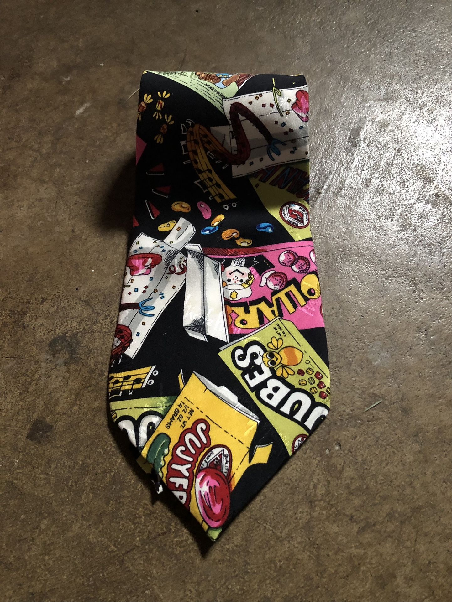 Nicole Miller Silk Tie 1994 Vintage Hand Sewn Colorful Candy Advertisement