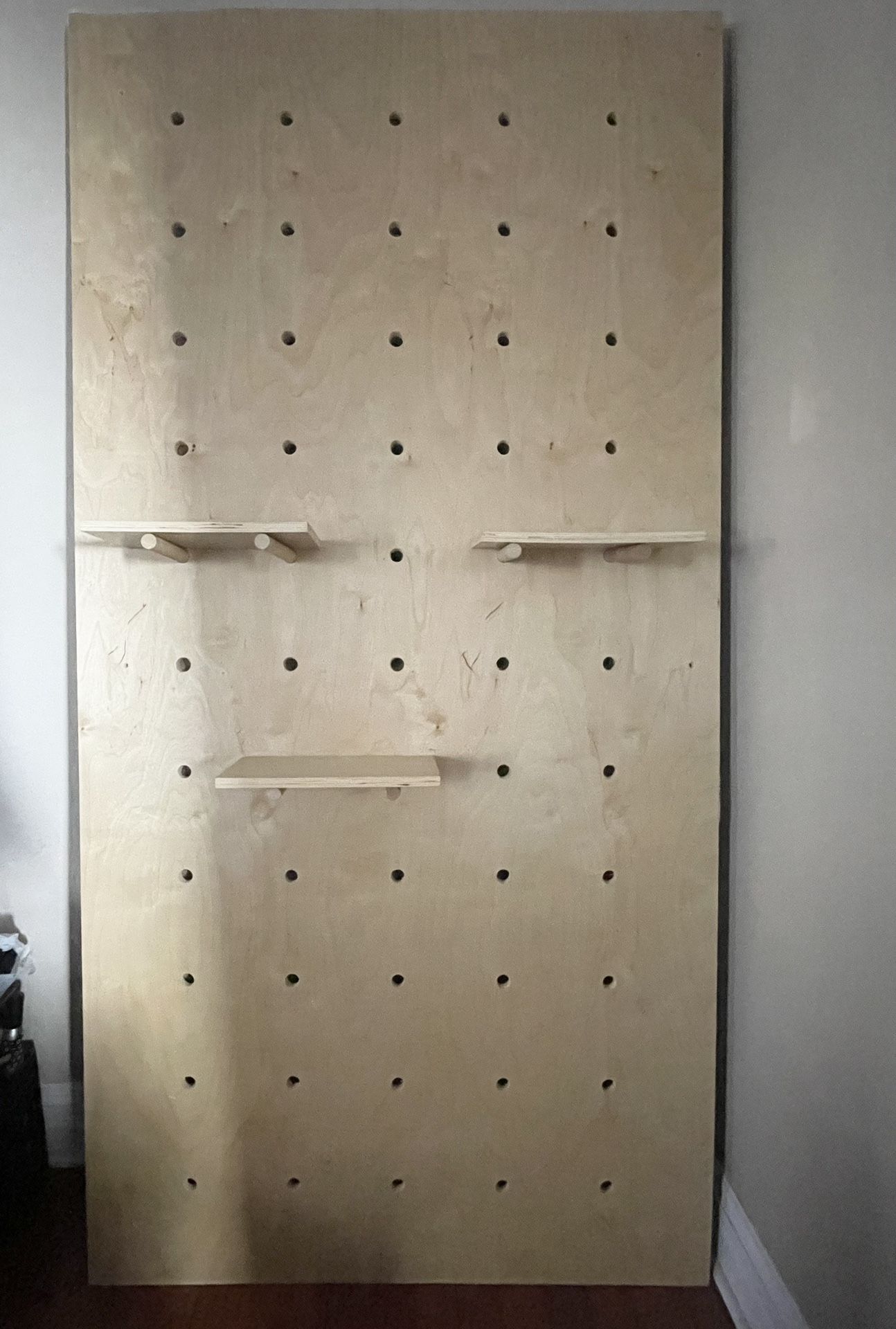2 Peg Board Shelving Boards with pegs and shelves $150 each 8’x4’