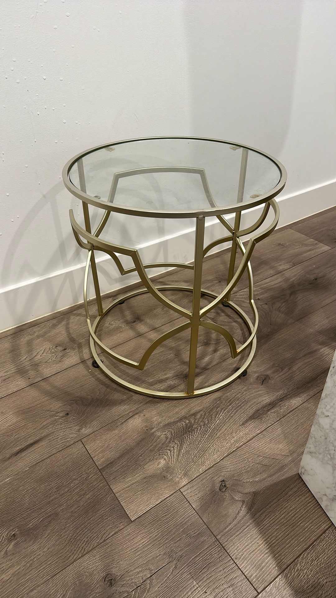 Brand Urban Trends Product Dimensions 20"D x 16.25"W x 16.25"H Item Weight 25 Pounds Frame Material Metal Color Champagne Top Material Type Metal Nullify Imported Item Type: Table Item Material: Metal Item Finish: Metallic Finish Item Color: Champagne Item Measurements: 16.25"x16.25"x20.00"H; 14.00"x14.00"x17.75"H