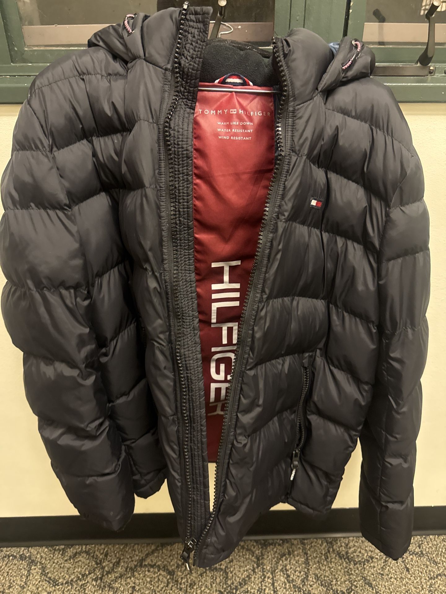 Tommy Hilfiger hooded puffer jacket in black. Warm Like Down insulation, water resistant and wind resistant. Worn and used but still in good condition — puffs up well and keeps you warm. Great for cold/rainy days.