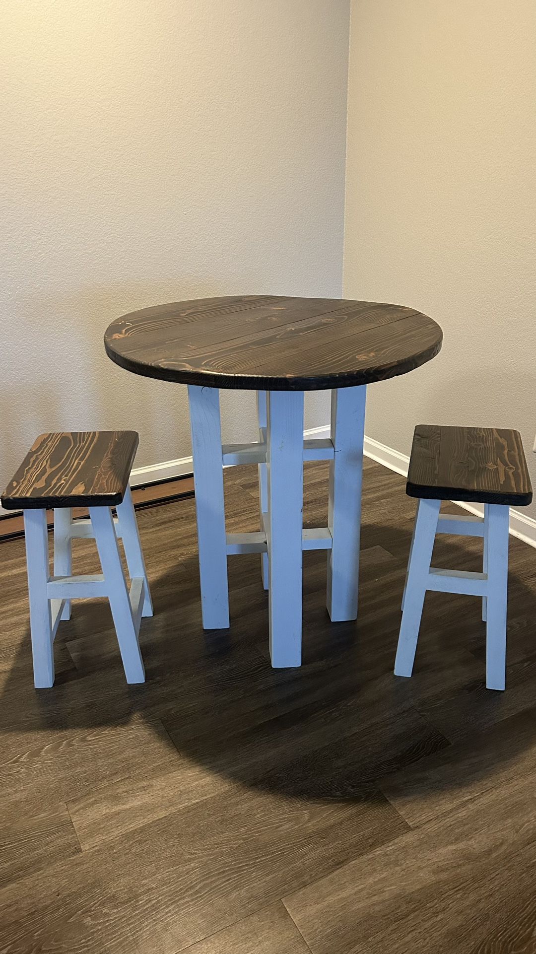 Handcrafted table with matching stools. Purchased locally. Price is negotiable - make an offer. Local delivery available