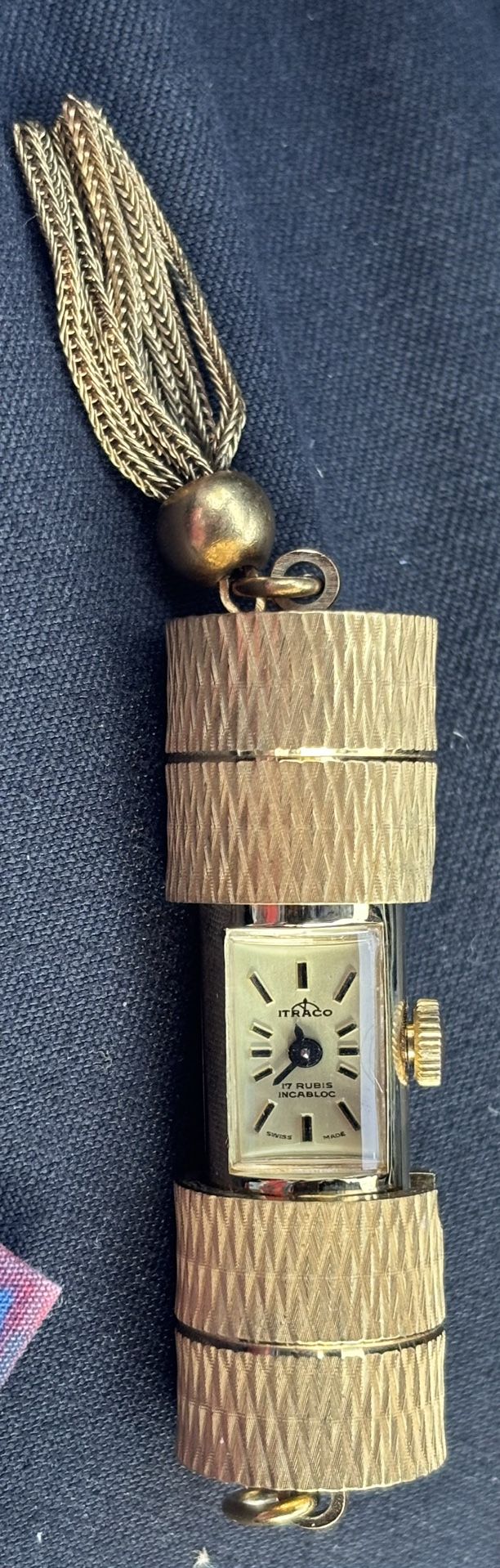 Vintage Itraco Pendant Watch – Swiss – Not Working – Gold Tone – Tassel