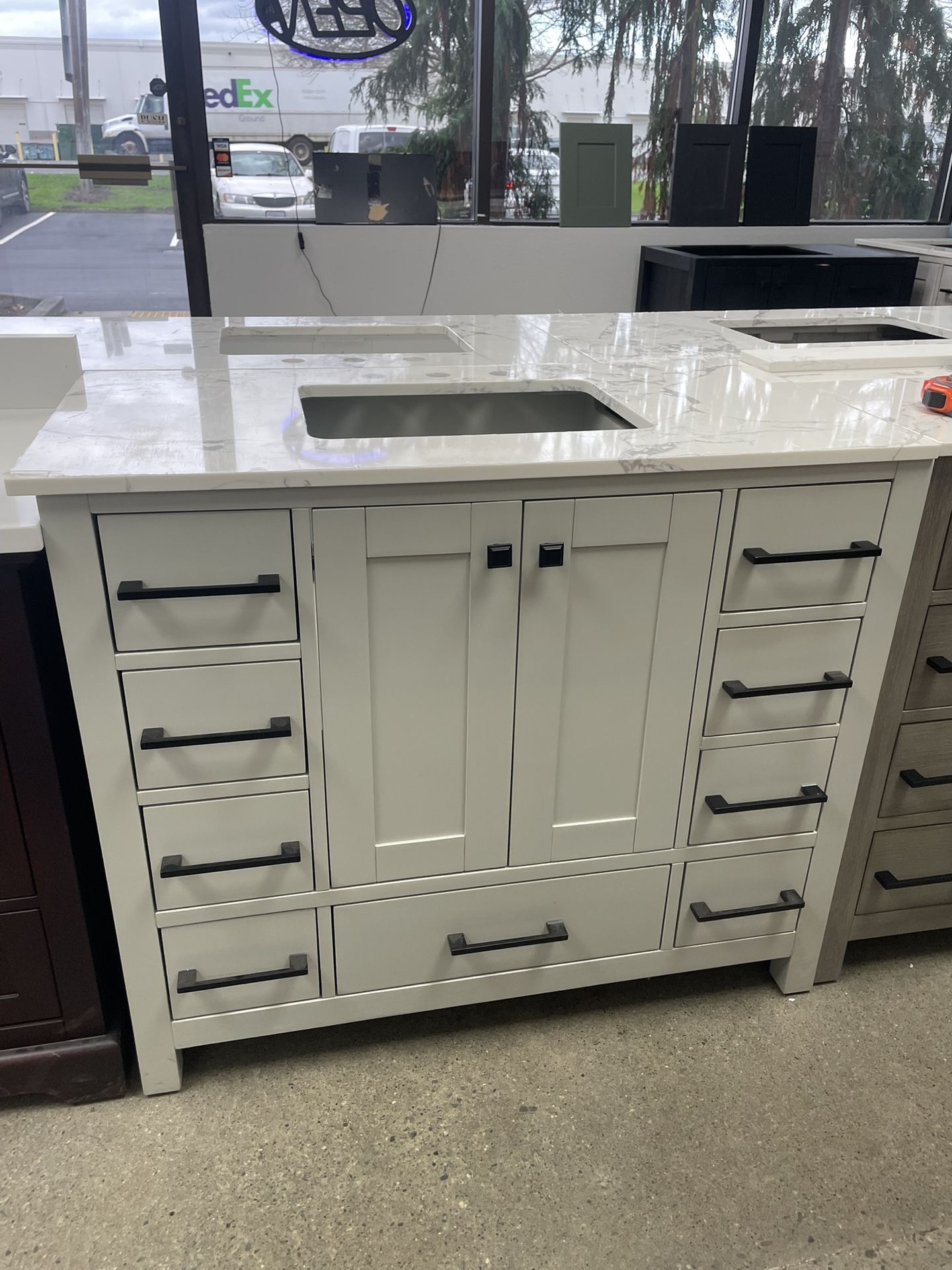 Bathroom vanity cabinet 42” solid mango Quartz top with sink and backsplash