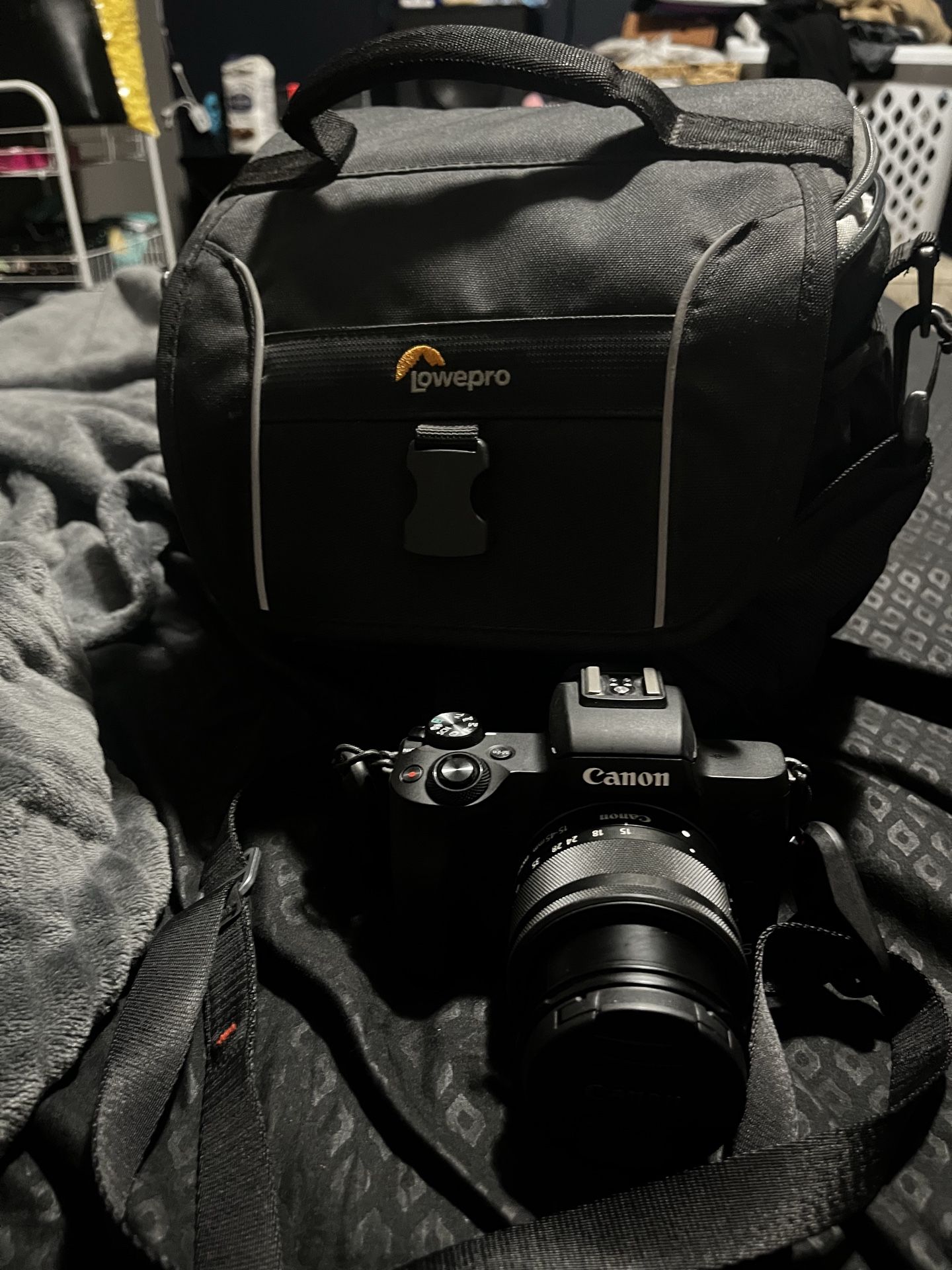 Canon EOS M50 for sale everything works great no type of issues whatsoever. Had it since 2021 and don’t use it as much now so I wanna sell it. Brings bag, lens, lens cap, strap, charger and cord. I could throw in a sd card too asking 635obo. Let me know asap!