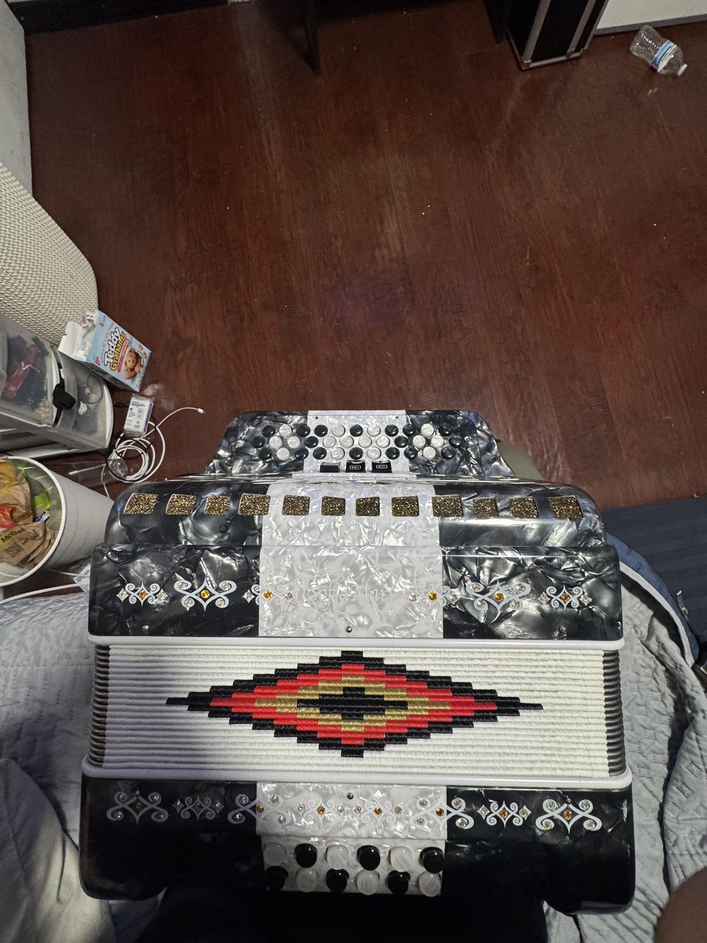 Bueno el acordeon, nomas que tiene una voz quebrada en el registro de clarinete, pero la voz maestra y de violin suenan bien, razon por vender es en busca de otro instrumento