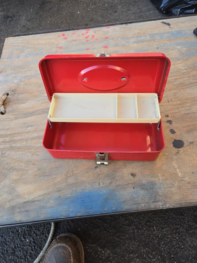 11 X 4 X 5 inches. The latch that holds it close to still fully functional.