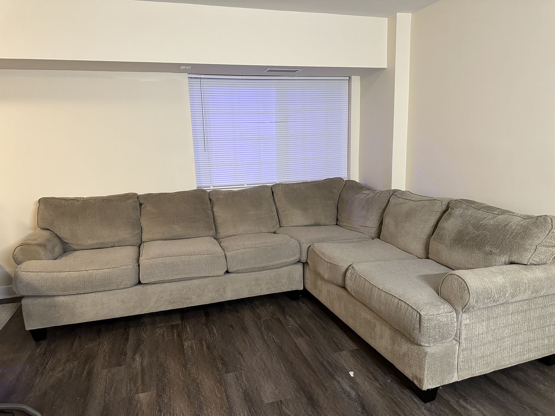 Just cleaned, neutral color, great condition, sturdy and comfy. Negotiable but be reasonable Last 2 pictures are how the couch looks completely dry. If anyone wants this I can clean it one more time using my shark deep cleaning machine and then you can come pick it up ITS VERY COMFORTABLE, as you can see this does not fit in my new apartment 😠MAKE AN OFFER