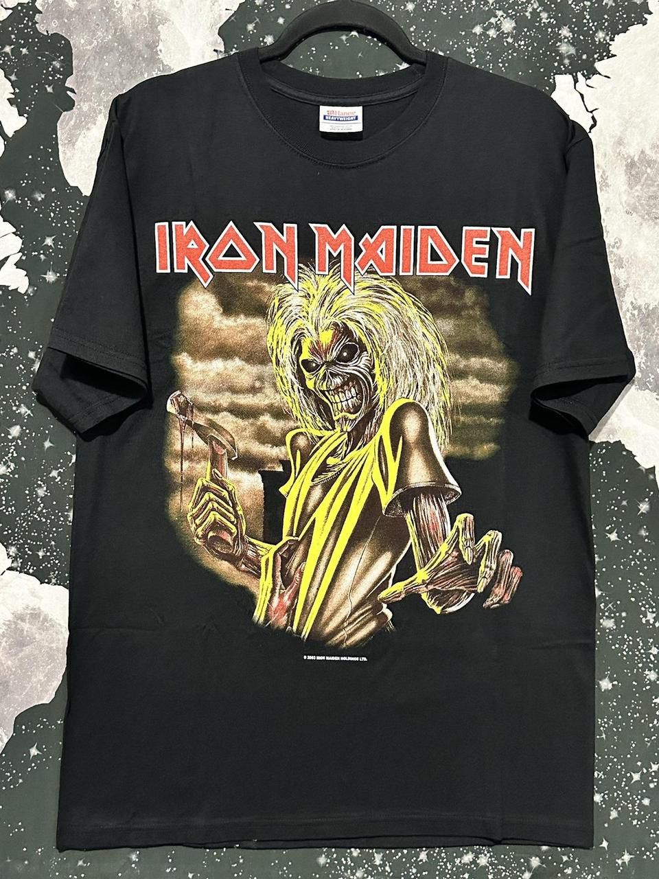 Iron Maiden British Wave Heavy Metal rock band Killers album artwork shirt, color is black with front graphic & back lettering. Good condition Sz. Medium Measurements (20”x30”)