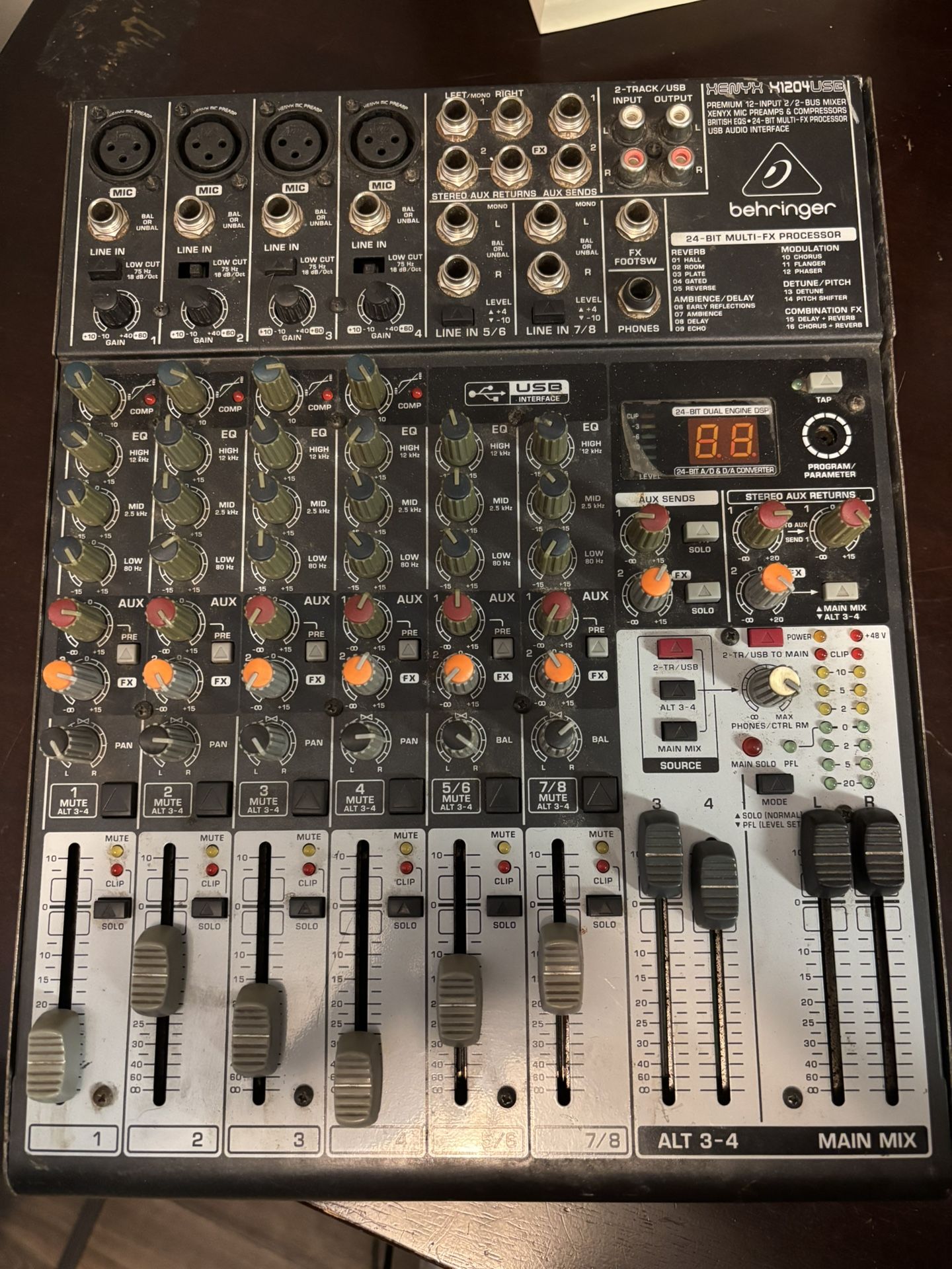 It’s been in storage for a few years so it looks a little rough but it works great! Listing is for module only, no cables or power supply. I will deliver anywhere in the Charleston area and accept cash, cash app, or Zelle. The Behringer XENYX-X1204USB is a compact 12-channel USB audio mixer designed for professional use in both live and studio settings. With phantom power capabilities, this mixer allows for powering condenser microphones without the need for separate power sources. The XENYX-X1204USB also features 2 buses and 12 line inputs, making it versatile for various audio setups. Additionally, its USB connectivity allows for easy integration with digital audio workstations for added convenience.