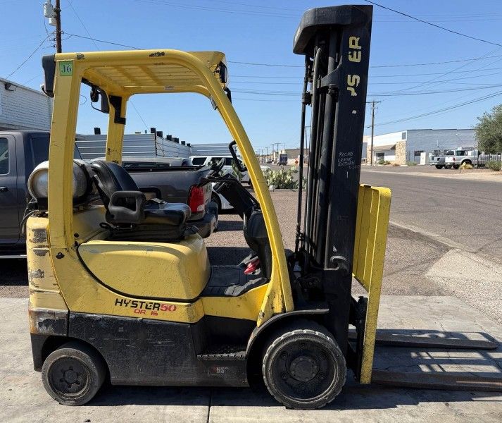 2017 Hyster S50FT Forklift for Sale in Phoenix, AZ. Three-stage mast - 218" (18.16 feet) max forklift height, sideshifter with tilt functions, 5000lb base capacity, cushion tires with traction, propane fuel - Mitsubishi engine, 42" forks, load back rest, monotrol. This Hyster lift truck is in good working condition. Available for purchase.