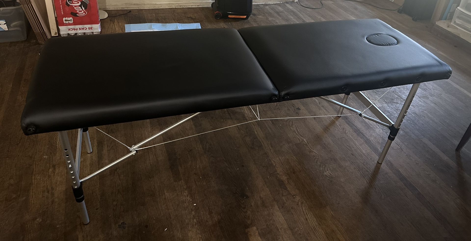 Leg room, 8 different height adjustments, body linen (quilted fleece table pad ) Light weight to carry for services at home, etc ..