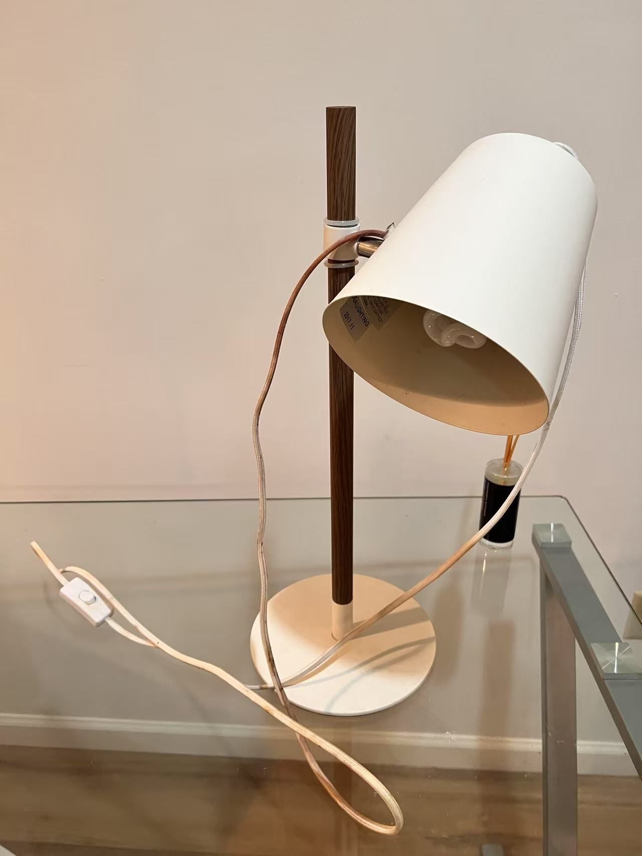 ✨ Features: • Sleek white shade with wood-style stand • Sturdy round base for stability • On/Off switch on cord for convenience • Works with standard light bulbs (bulb included) • Great for bedroom, study, or living room décor ✅ Condition: Good, fully functional 💡 Adds a warm, cozy atmosphere to any space