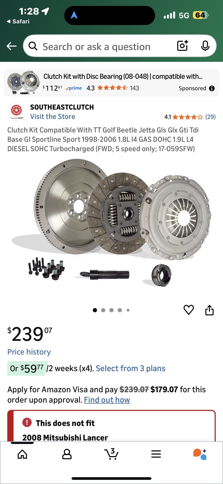 Clutch Kit Compatible With TT Golf Beetle Jetta Gls GIx Gti Tdi Base Gl Sportline Sport 1(contact info removed) 1.8L 14 GAS DOHC 1.9L L4 DIESEL SOHC Turbocharged (FWD; 5 speed only; 17-059SFW) Brand new realized I didn’t need a clutch and it was the transmission