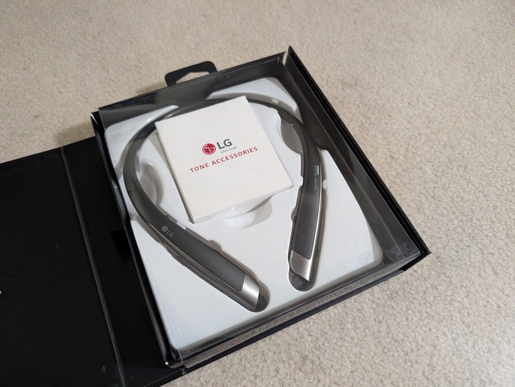 LIKE NEW LG Tone Platinum HBS-1100 Headset w/ Box & Extras! Harman Kardon Audio MINT Condition LG Tone Platinum Bluetooth Neckband Headphones (HBS-1100) Asking $140 OBO Make me an offer! Cash only - Local Pick Up What’s Included: - LG Tone Platinum HBS-1100 Headset (Black/Silver finish) - Original Retail Box and Manuals - Original Charging Cable - All original ear gels/earbuds (Multiple sizes included, clean/unused extras) Description For sale is a gently used LG Tone Platinum (Model HBS-1100) Bluetooth headset. This unit is in mint/great condition, functions perfectly. These are widely regarded as one of LG's best neckband models, known for their superior call clarity and audio fidelity. Key Features: - Premium Sound: Tuned by Harman Kardon for excellent, crisp audio quality. - Comfortable Design: Lightweight, ergonomic neckband design perfect for all-day wear. - Retractable Earbuds: No tangled wires; earbuds retract with the push of a button. - Great Battery Life: Easily lasts a full day on a single charge. - Vibration Alerts: Discreet vibration for incoming calls and messages. Condition Notes: The headset has minimal signs of wear and has been meticulously cared for. All functions (Bluetooth connection, mic, buttons, retractable wires) work flawlessly.