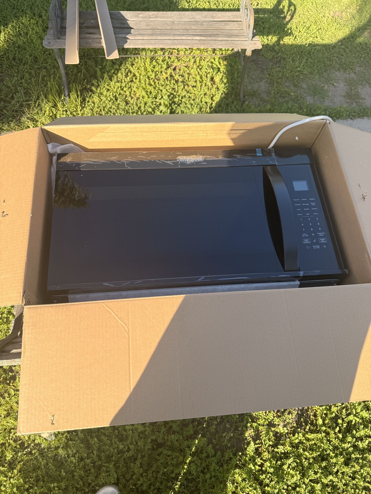 Brand new Whirlpool 30” OTR microwave in black. Still in the sealed box (opened only for picture). Perfect for rentals, home upgrades, or replacements. ✔ 1,000W ✔ Built-in vent system ✔ Sensor cooking ✔ Easy installation ✔ Warranty eligible upon installation Dimensions: Width: 30" Height: 17.125" Depth: 15.25" Pickup only or small delivery fee.