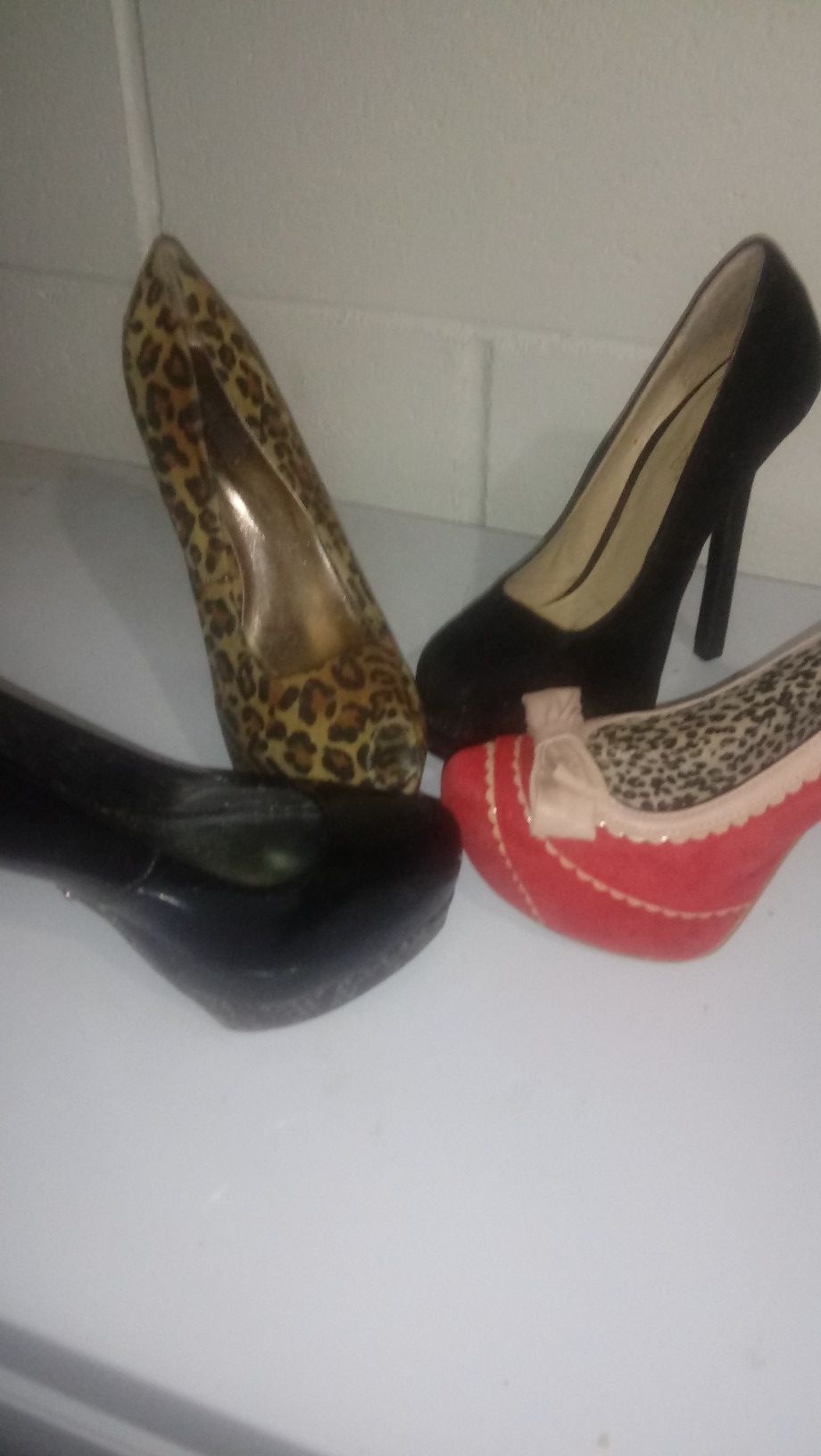 Sued and leopard ones size 7 and shiny black and red ones 6 and a half $10 each