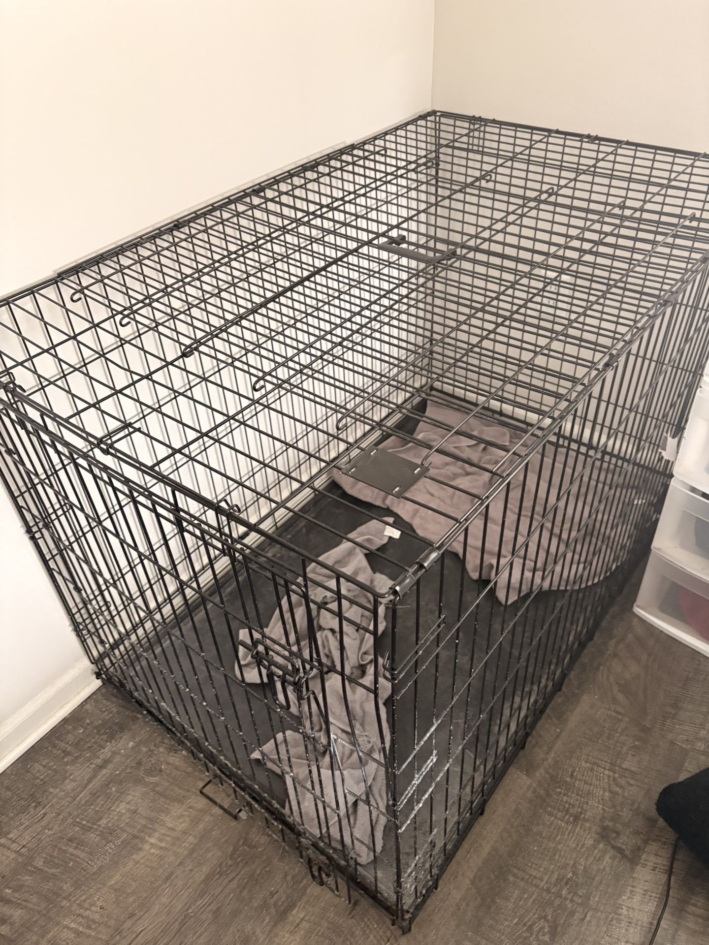 Folds down. It pretty big we have a big dog and theres still tons of space. Just dont have the space for it.