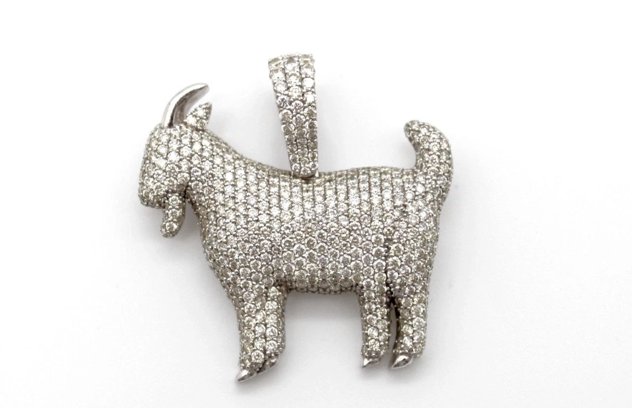 Icebox 14K White Gold Goat Pendant Natural Diamonds Iced Out Charm 19.8g
