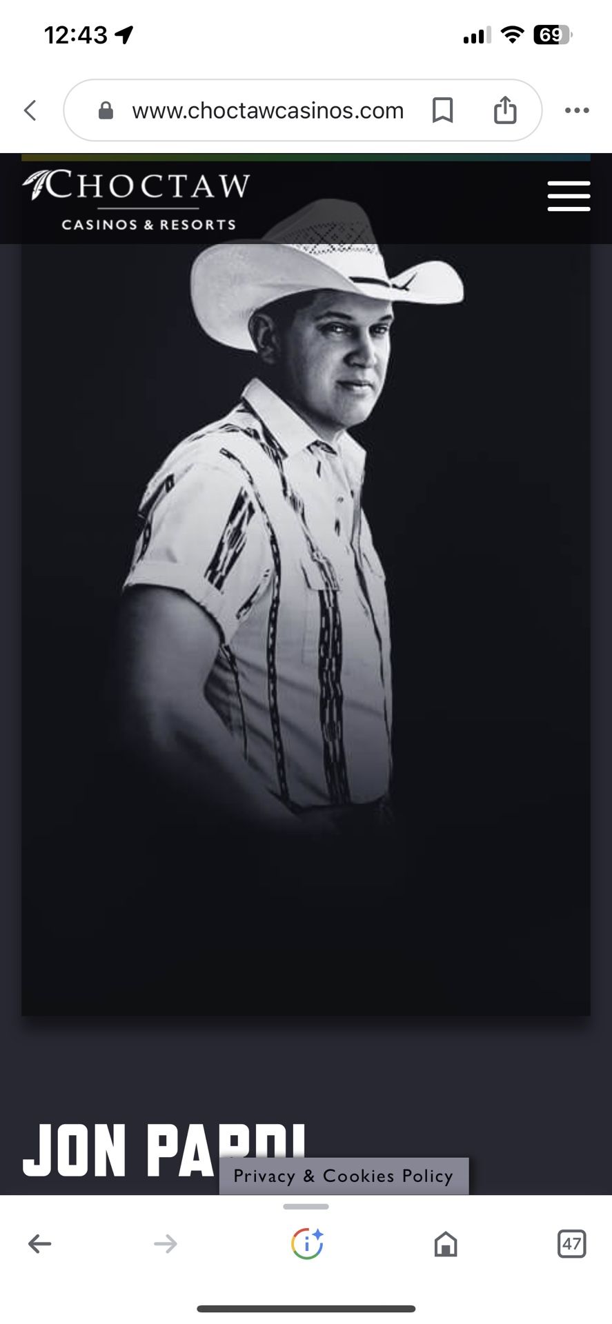 Selling 2 tickets for jon pardi concert at choctaw grand theater 8/4 Section 201 Row j Seats 5 & 6 $200 for both Must meet up in person