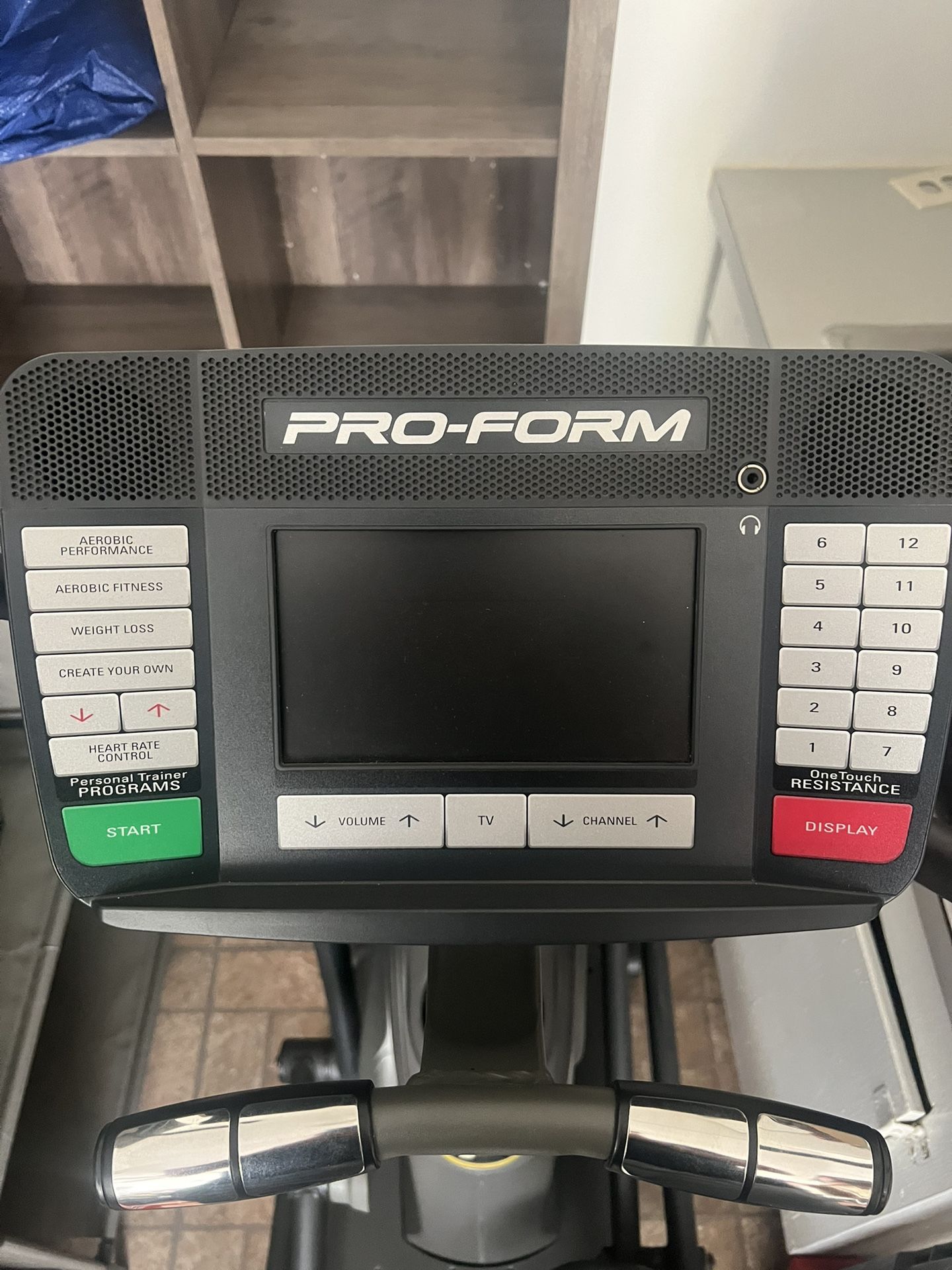 Pro form elliptical , right foot slips a lil and doesent always change resistance . Besides that in really good shape . Not sure how much to fix just more garage space . 100 obo elliptical Exercise
