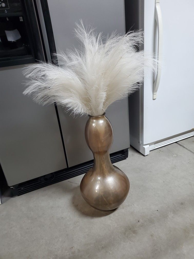 Vase Glass Large Breakable With Pompas Grass