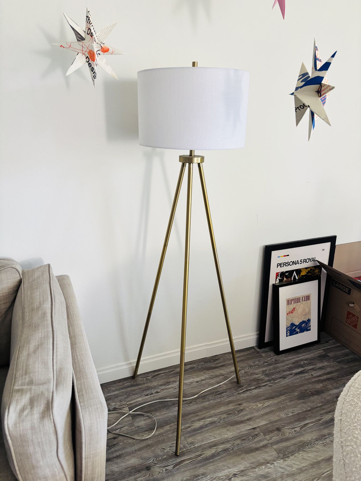 Like new gold metal and white floor lamp in great condition!