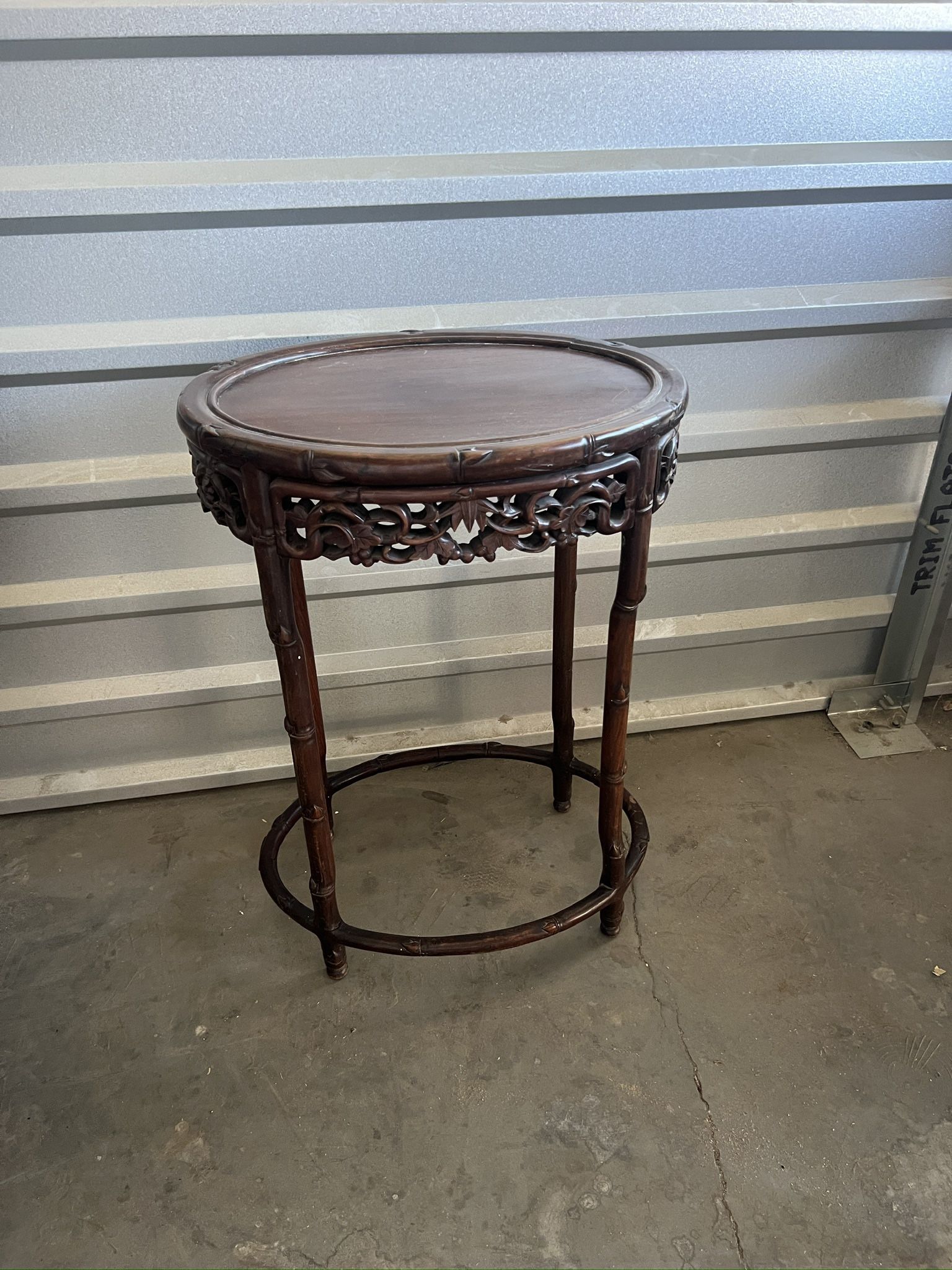 Hand carved side table is on good condition! It has really nice details and looks beautiful! The dimensions are 18.5 w x 14" d x 26" h. The price is $69.