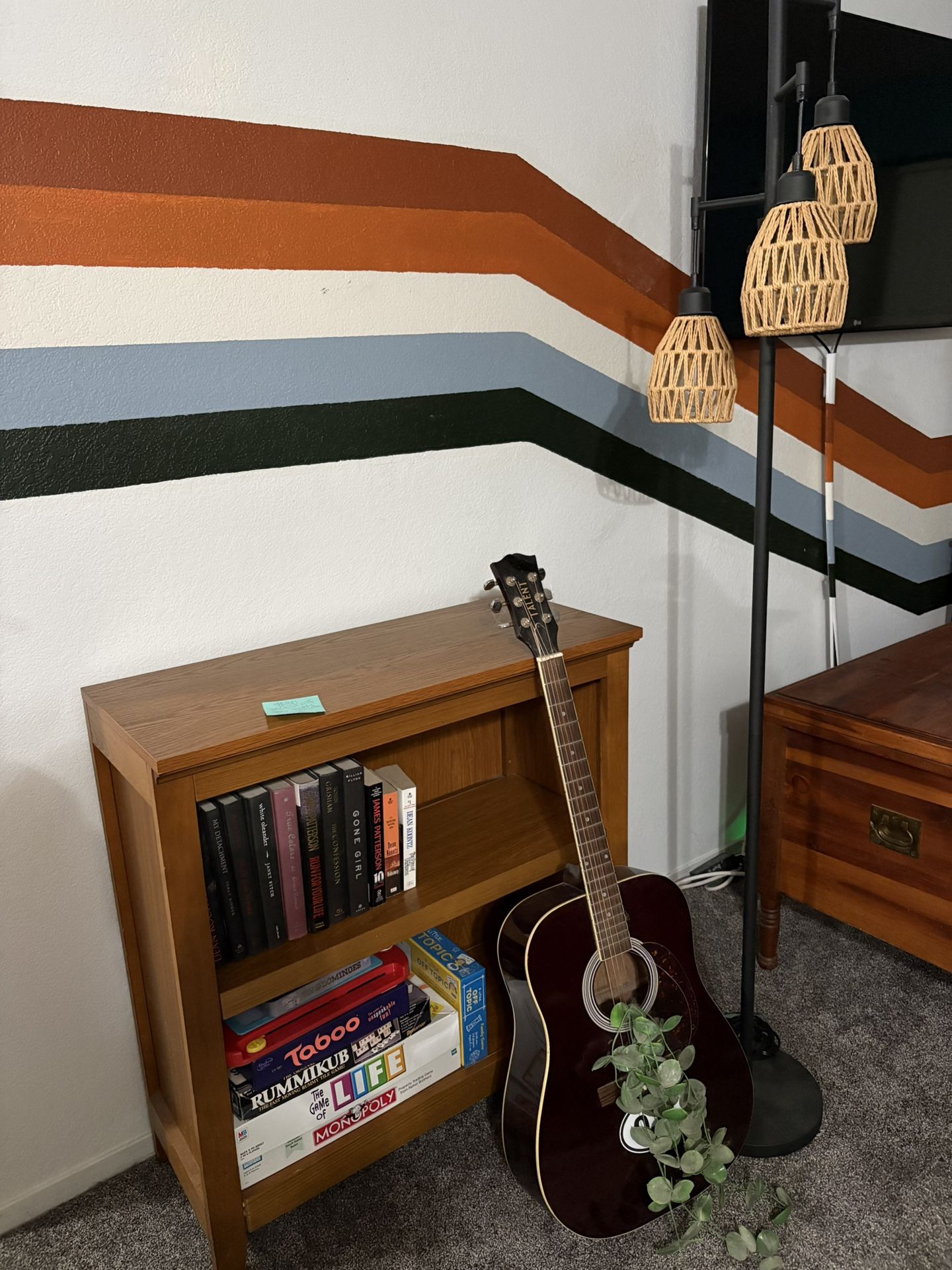 Bookshelf, Lamp, Guitar, Everything Inside Bookshelf