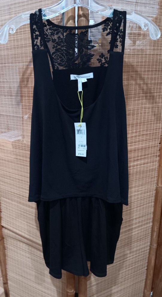 One piece shorts romper with cropped bodice overlay, shorts elastic waist, with 2 pockets, beautiful lace detail on back . Color Black Size Med. Flat 14"waist, inseam 2" , 18" chest. Tags attached. Please visit my page to view more items. Thank you N12b/71525
